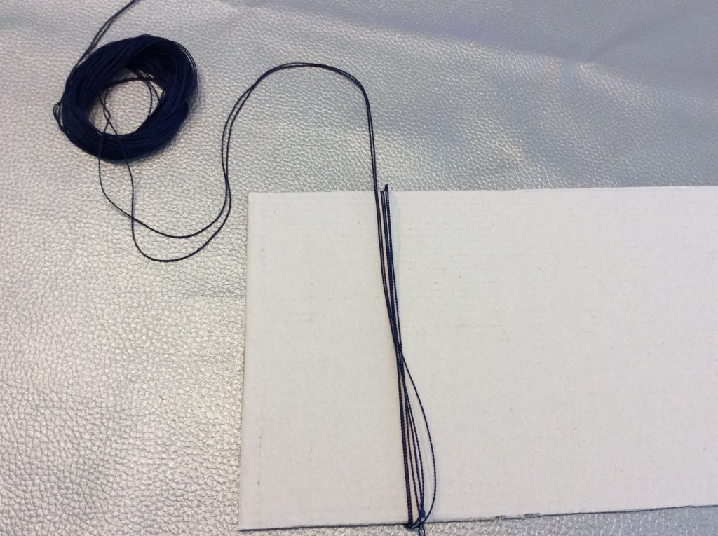 Una vez que hemos dado todas las vueltas alrededor del cartón, tenemos que introducir todos los hilos en la argolla.