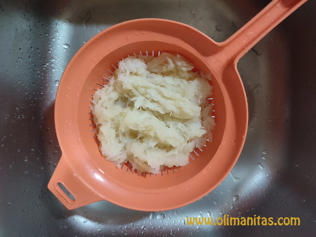 - Una vez cocida la sacamos de la olla con cuidado de no quemarnos y la escurrimos en el fregadero.